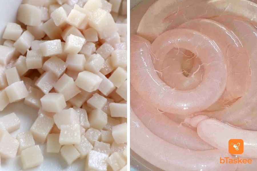 - Bóp sơ qua lòng non với muối, rửa lại với rượu trắng, vớt ra ngay, để ráo nước.