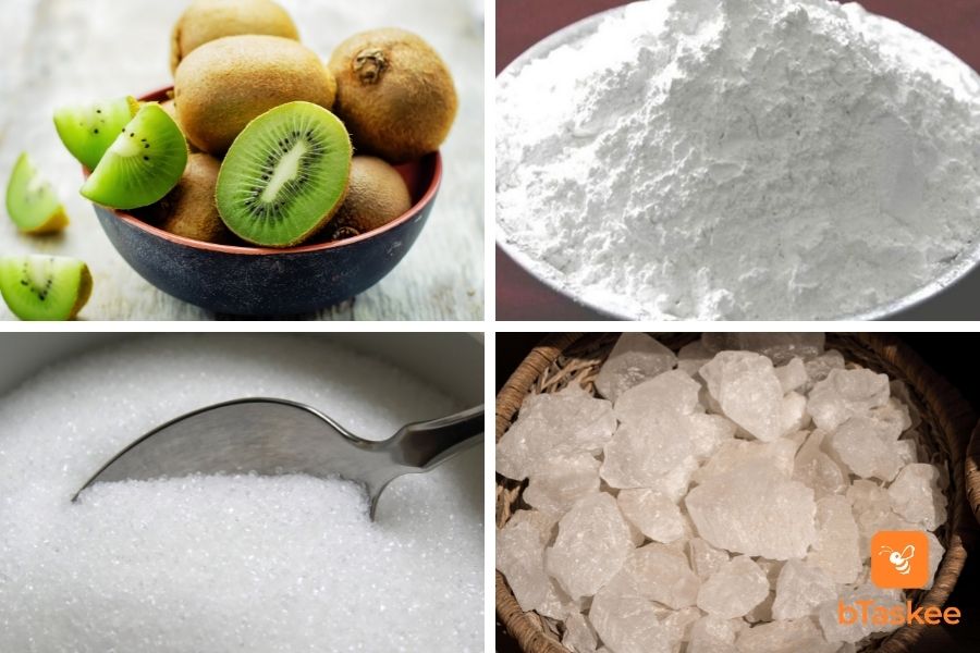 - Lặp lại 2 – 3 lần hoặc đến khi sờ miếng kiwi không còn dính đường nữa là được.