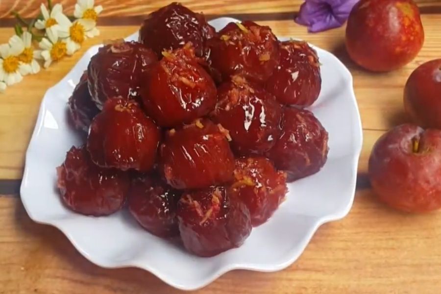 Mứt mận Hà Nội mềm dẻo, thơm nhẹ mùi gừng, vị chua chua ngọt ngọt, nhâm nhi cùng với trà ngon trong ngày Tết là hết sảy.
