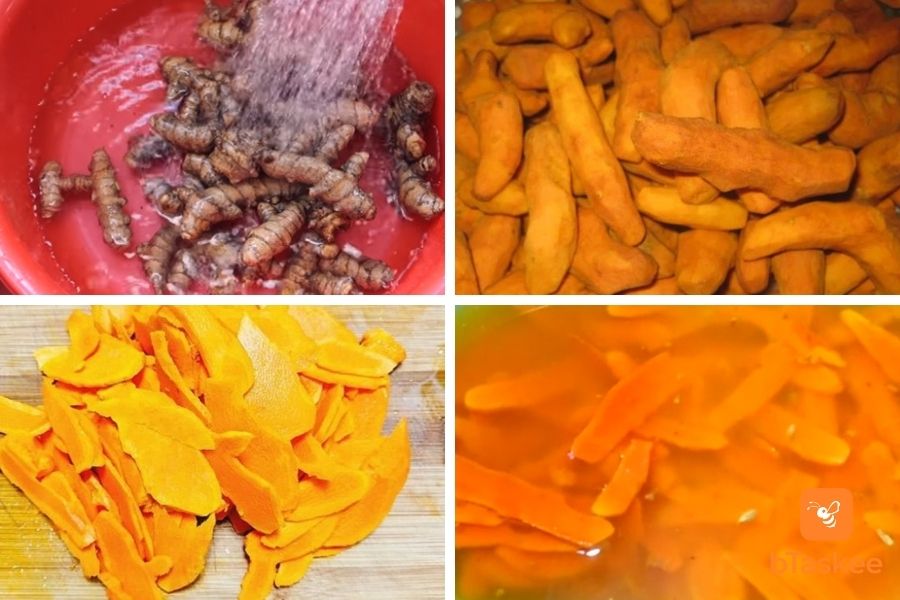 - Nghệ sau khi ngâm xong, bạn rửa với 3 lần nước cho nghệ thật sạch.