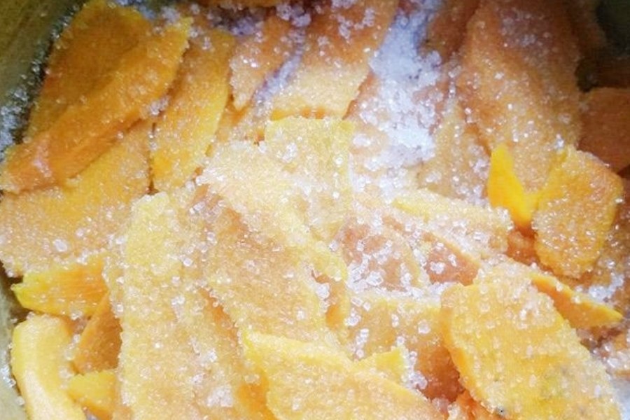 - Cuối cùng, bạn lấy mứt nghệ ra cho vào dĩa để thưởng thức, phần đường kết tinh để riêng.