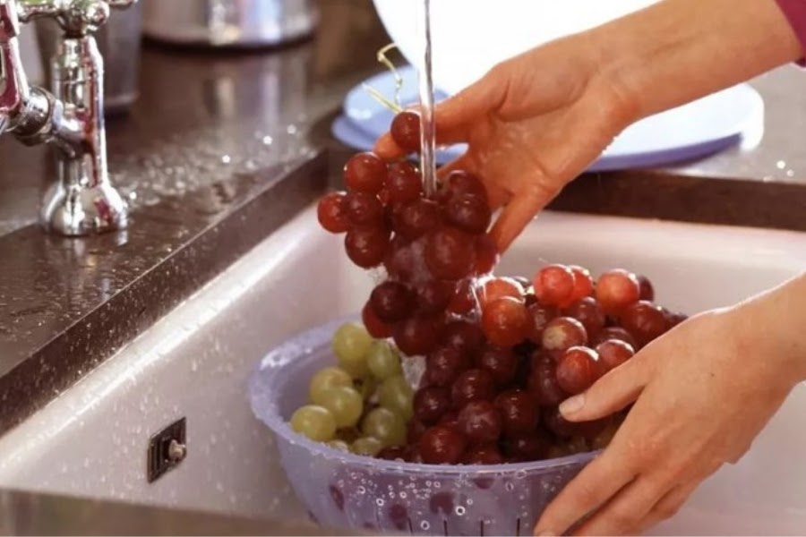 - Khi rửa nho bạn không được tách nho ra khỏi cuống vì làm như vậy sẽ khiến nước lã ngấm vào trong thịt quả.
