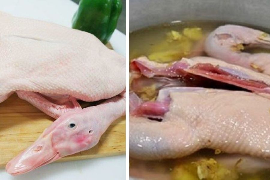 - Ở bước 3 bạn có thể không cần chần vịt nếu như quá trình sơ chế ở bước 1 vịt đã hoàn toàn hết mùi và có màu trắng đẹp mắt.