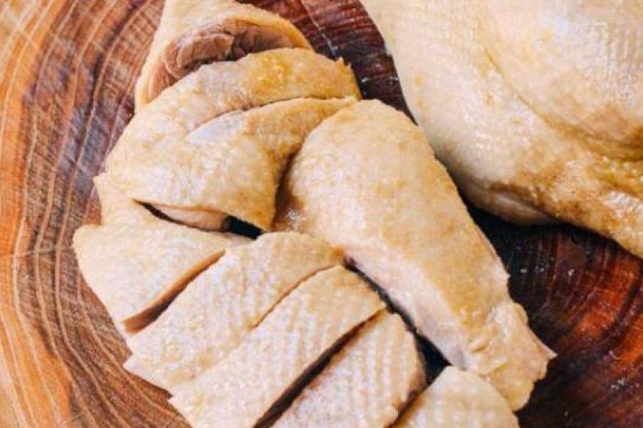 - Đến khi thịt vịt đã chín hoàn toàn thì vớt vịt ra để thịt hơi nguội ráo và chặt miếng.