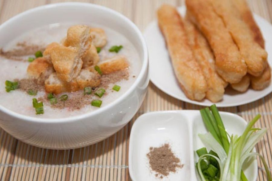 - Bạn có thể ăn kèm cháo với giá trụng,bánh quẩy, chà bông,… tùy thích nhé.