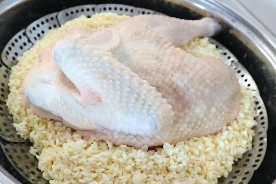 - Nếu xửng hấp nhà bạn không to bạn có thể hong riêng xôi và gà.