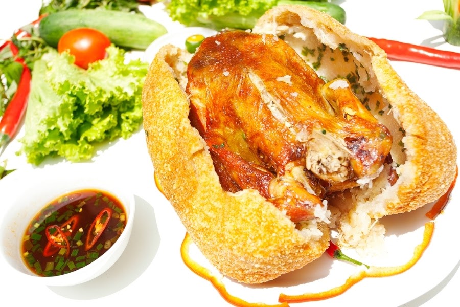- Gà sau khi mua về bạn dùng muối và chanh xát vào phần da, rửa sạch dưới nước để loại bỏ mùi hôi tanh. Sau đó hòa 1 chén gia vị gồm tiêu, muối, dầu ăn rồi thoa đều lên khắp thân gà.