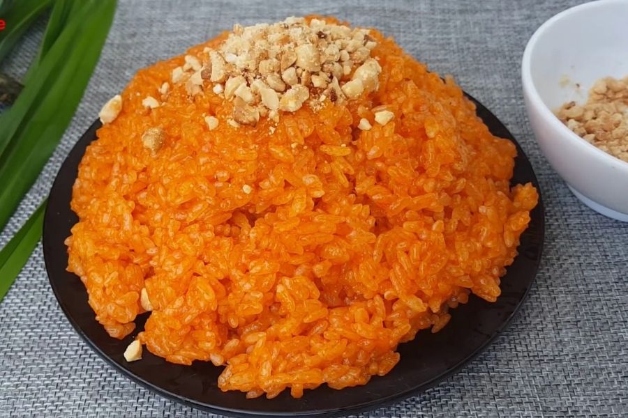 Chỉ với vài bước đơn giản là có ngay một món xôi gấc mềm dẻo, thơm ngon.