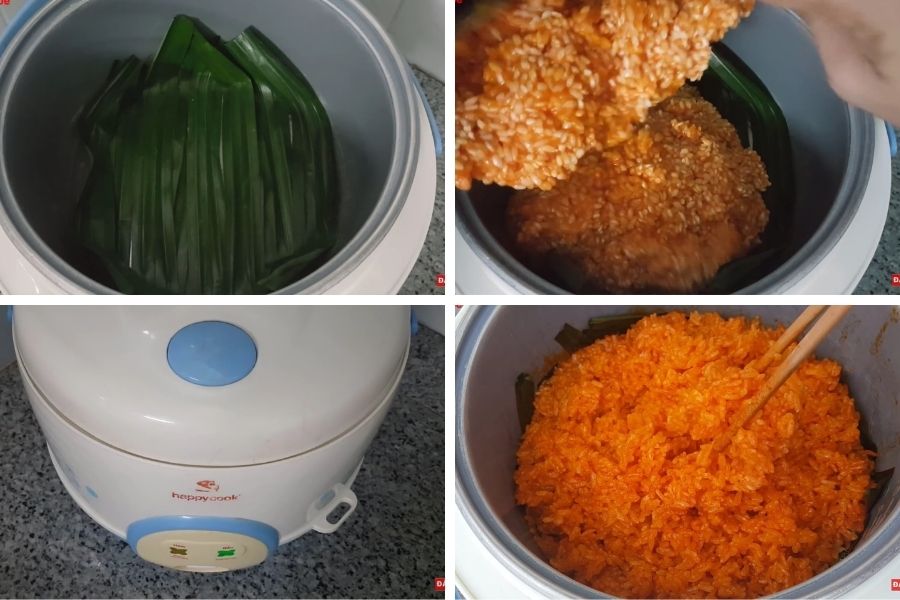 Khi nấu xôi gấc bằng nồi cơm điện thì không cần đảo xôi nhiều lần vì sẽ khiến xôi bị nát.