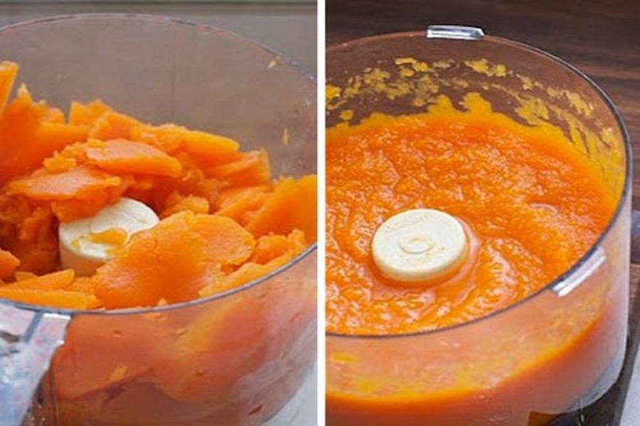Bước 2: Hấp và nghiền nhuyễn bí đỏ