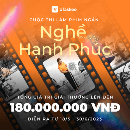 Cuộc thi làm phim ngắn “Nghề Mang Hạnh Phúc” được bTaskee tổ chức nhằm lan tỏa thông điệp tích cực về các nghề nghiệp trong xã hội. Cùng bTaskee truyền tải niềm vui nghề nghiệp và rinh phần thưởng trị giá lên tới 180 triệu đồng.