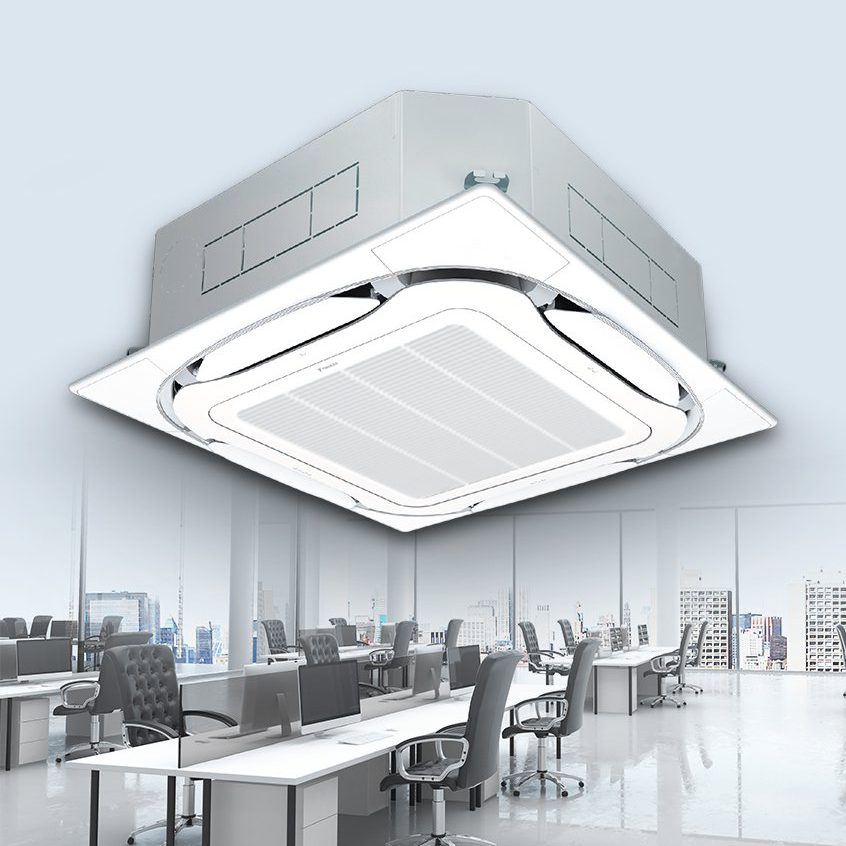 2.แอร์เชิงพาณิชย์ เป็นเครื่องปรับอากาศขนาดใหญ่ สามารถแบ่งย่อยได้อีกหลายรูปแบบ เช่น แบบฝังฝ้า ติดตั้งอยู่บนตัวฝ้าของเพดาน มีการปล่อยความเย็นออกมาจากตัวแอร์ 4 ทิศทาง เหมาะสำหรับใช้กับสำนักงาน ร้านค้า ร้านอาหาร หรือภายในอาคารที่มีพื้นที่กว้างขวาง