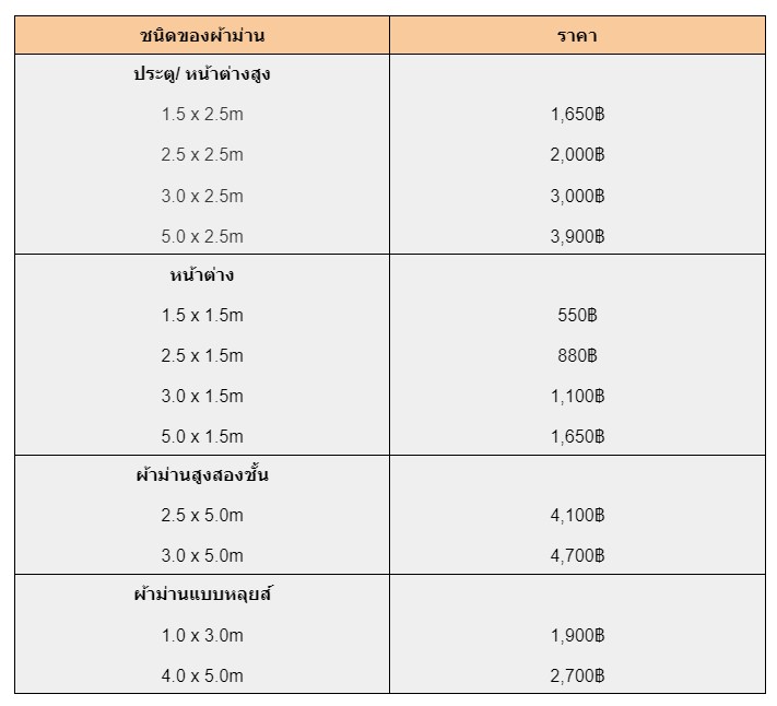- ผ้าม่านหน้าต่าง : ราคาทำความสะอาดเริ่มต้นที่ 550 บาท