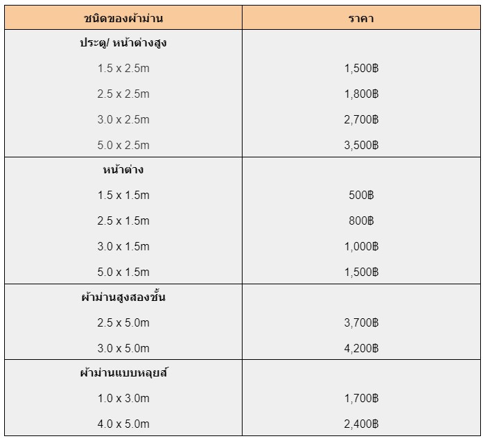 - ผ้าม่านหน้าต่าง : ราคาทำความสะอาดเริ่มต้นที่ 500 บาท